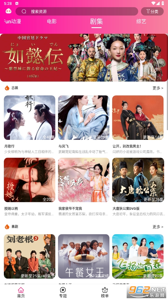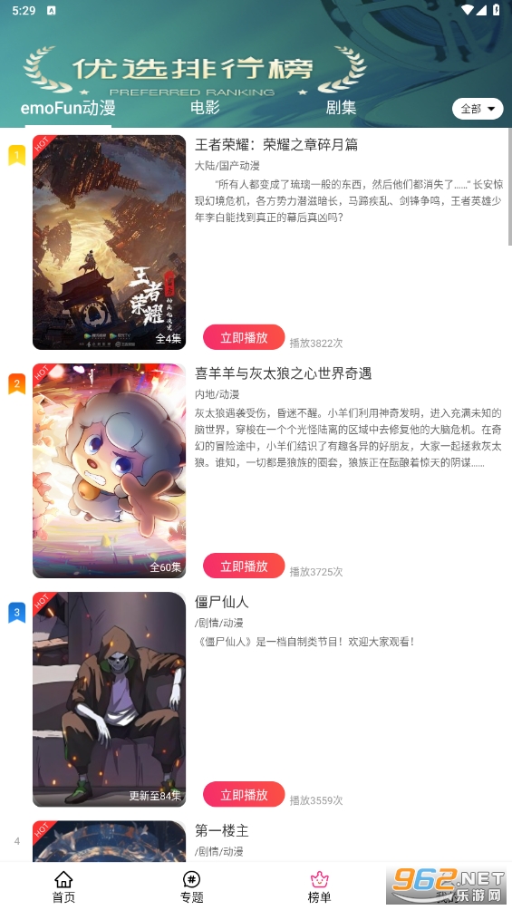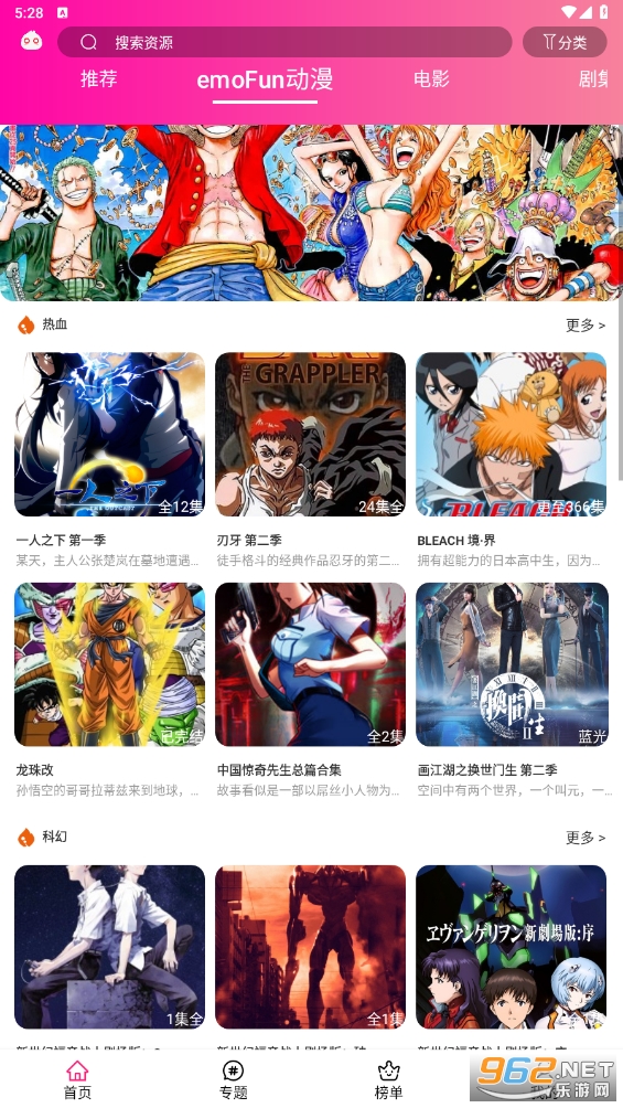 emoFun是一个非常好用的动漫追番软件,这里有着很全面的资源,并且有着很少的广告,基本上不影响使用体验,让大家可以在这里享受追番的乐趣。这里主打的动画资源,不过也有电视、电影、综艺等资源,完全免费,无需注册打开就能用,多条线路,无水印在线流畅播放,也支持支持投屏和缓存。在这里有着丰富的动画资源,不管是经典的番剧,还是一些冷门的番剧,都是可以在这里找到的。并且都是原汁原味的版本,不用担心看番的时候遇到的情况,不用在做一个正版受害者了,给大家带来更好的追番体验。同时在这里还有排行榜和专题推荐,对于正处于动画荒的用户来说,就可以看到最近都有哪些热门的内容,从而找到自己喜欢的动画。