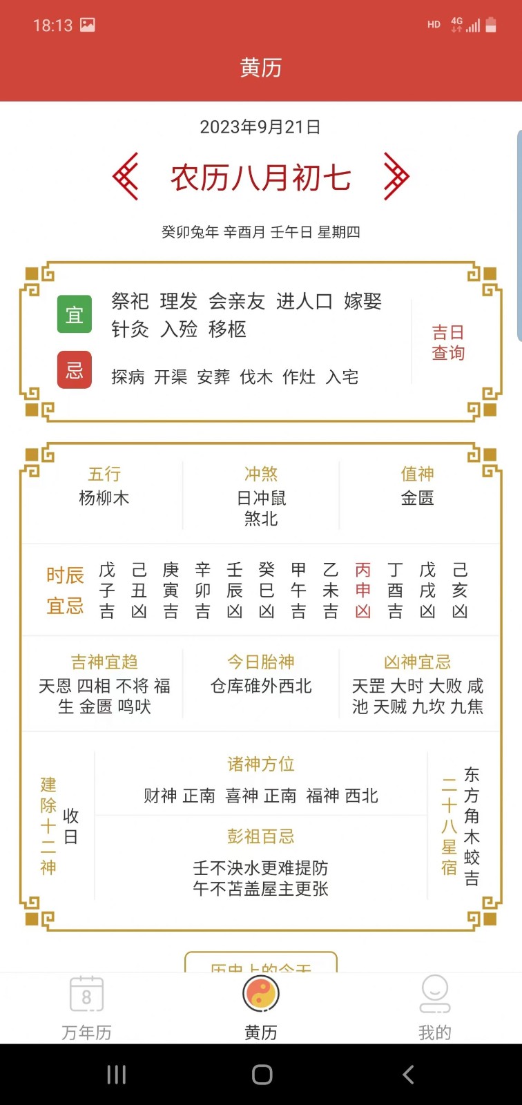 旭达万年历app是一款非常不错的日常查询软件,提供黄历宜忌查询,可以依据用户输入的时间段、事项,自动生成适合的宜忌指导,让用户更加科学地规划自己的生活节奏。还可以通过app来查询每一个日期的吉凶日,并根据不同的吉凶日来规划自己的日程安排,让自己处于一个良好的状态。
