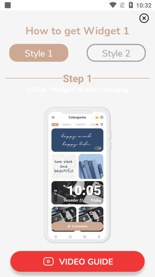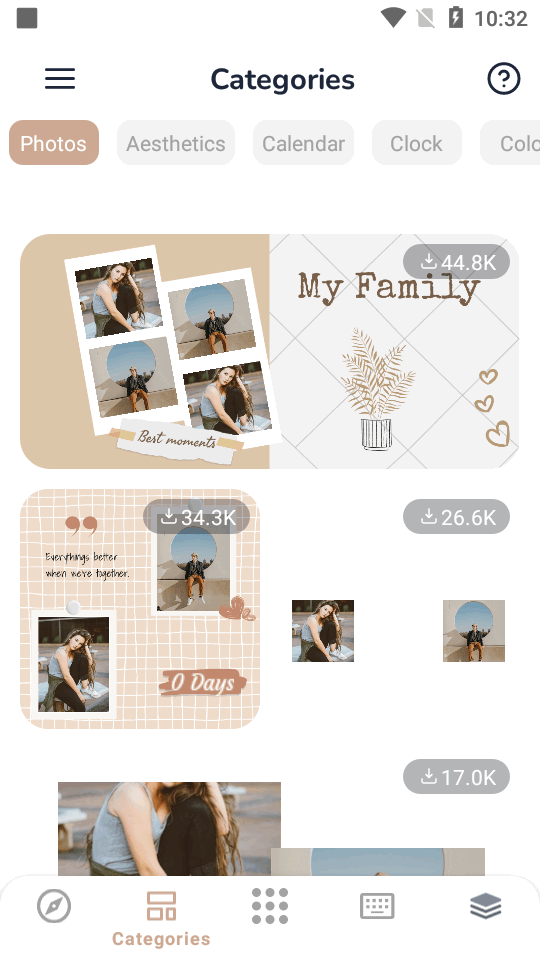 1、如步数计数器、电池电量、日历、时钟、天气等,以及您的个人照片,通过应用的自定义工具,创造出您独特的小部件。