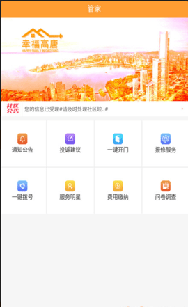 幸福高唐家是一款非常方便好用的智慧社区应用软件,拥有非常丰富实用的功能,操作简单方便,用户线上就可以掌握最新社区消息和各种缴费,报修功能,上部门服务,管理方便,各种通知实时了解,你提供最优质便捷的社区服务,喜欢这款软件的小伙伴们快来下载试试吧!