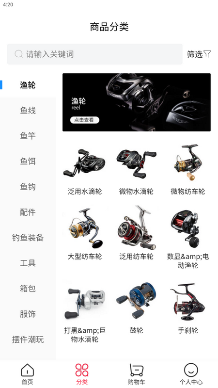 2、提供一站式购物体验,方便用户快速选购到所需的渔具用品;