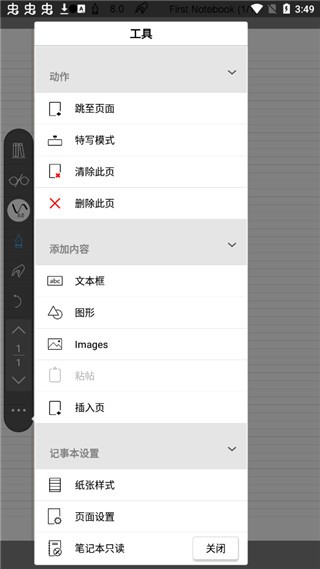 3、在左边有非常丰富的工具,用户可以自己选择字体颜色、钢笔等等工具进行笔记书写