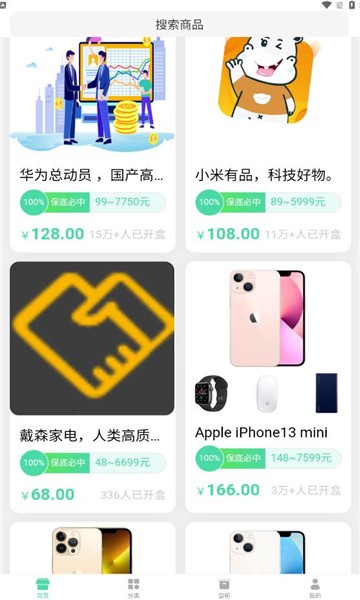 3、商品展示:用户可以浏览各类盲盒商品,包括限量版、热门盲盒等。