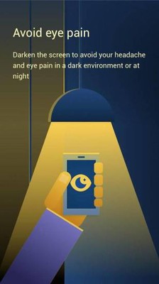 3、低于系统最低亮度的昏暗化 - 使用暗屏选项保护眼睛免受自然蓝光的伤害。用暖光当做读书光,这是最好的缓解夜间阅读导致慢性头痛的方法。