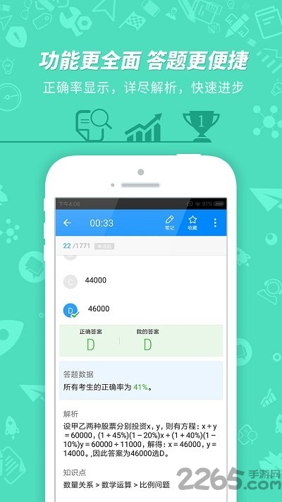 91UP公务员考试手机端是专门针对公务员考试所开发的练习软件,它也就是591UP公务员考试改名后的最新产品91UP公务员考试。考生有效地利用零碎的时间来进行复习、备考。同时也可以作为求职者在笔试阶段的复习材料。91UP公务员考试收录足足有3万道由公考专家精选的题目,覆盖到公考所需的所有知识点。它提供了包括:在线做题、错题库管理等功能。