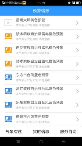4、预警信息,为公众提供全省气象、海洋、水体预警信息查询,提前了解防灾动态,提前避险;