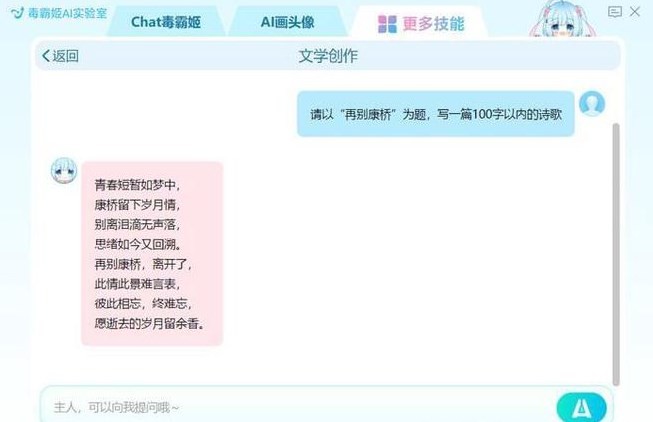 毒霸姬ai实验室是一款金山毒霸人工智能ai工具,手机端功能也是非常全面的,为大家提供了非常丰富的实用小工具,例如AI编程、文学创作、朋友圈文案等等一应俱全,可以很好的满足小伙伴们的使用需求,操作起来也非常的简单,有需要的小伙伴们快来下载体验吧!