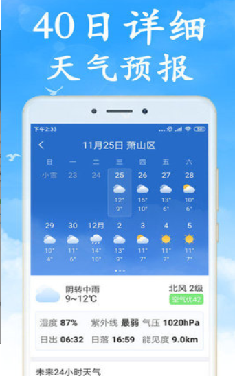 2、未来七天预报:清风天气能够提供未来七天的天气预报,用户可以事先了解一周内的天气情况,合理安排出行计划,避免受到恶劣天气的影响。