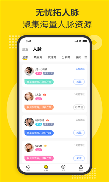 3、在软件中、你还能够结交与自己志趣相投的朋友、一起开展一番新的事业。