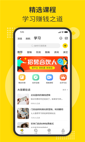 2、软件设置了诸多精品课程内容可供用户线上学习、通过聊天发现新的人脉和商机。