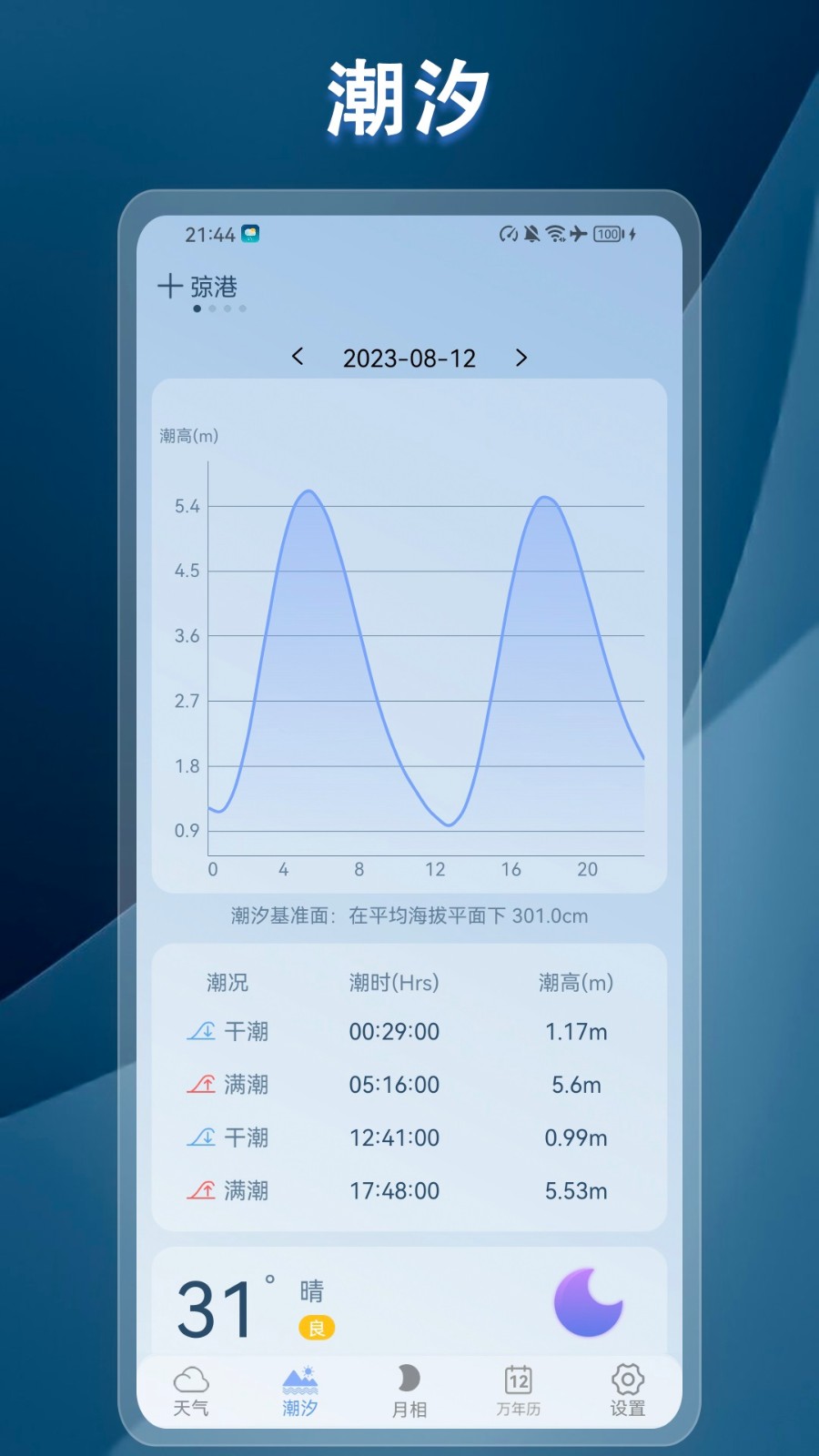3、帮助您了解最新的海浪、海水和月亮状况,让您更科学地计划出行。