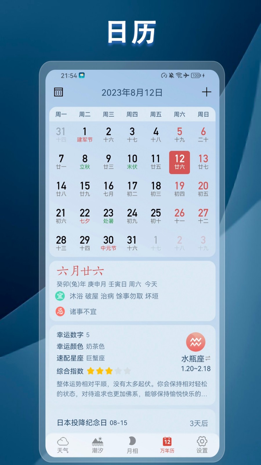 1、提供了日历功能,帮助您快速浏览重要的节日和纪念日;