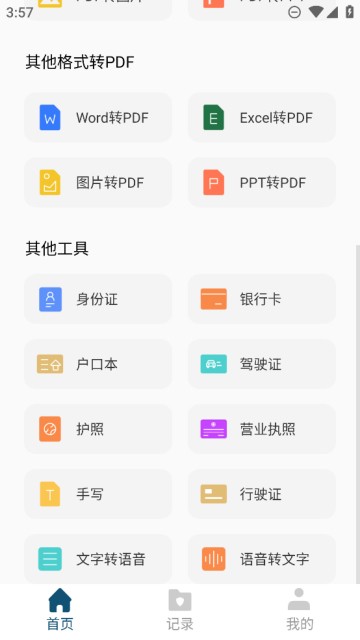 2、其他转PDF:提供手机word转换PDF、图片转换PDF、PPT转换PDF、Excel转换PDF格式、只需选择需要转换的文档格式即可进行转换、能更方便的处理PDF文件