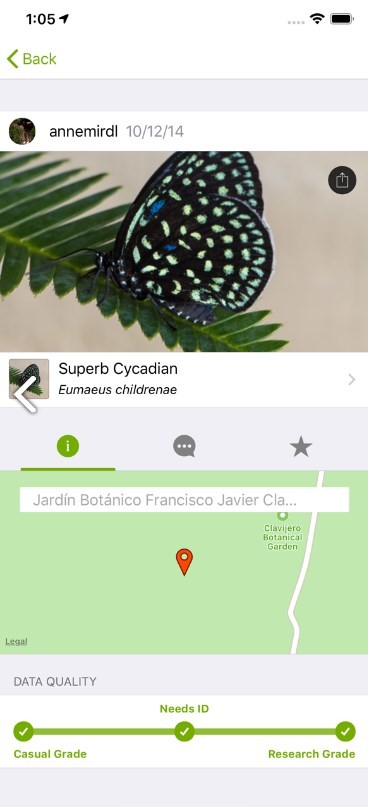 2、社区反馈: 创建账户,分享您的观察结果,并就您所看到的展开对话。无法识别生物?从 "植物 "或 "真菌 "等宽泛的标识开始,这样其他更专业的人就可以找到它并完善标识。