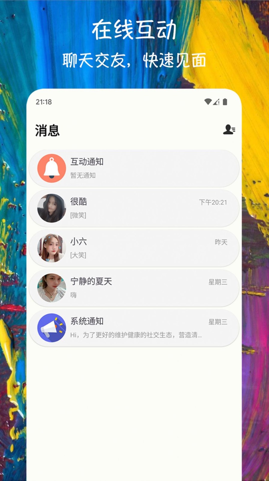 1、界面设计简单直观、易于操作,让用户能够快速上手,享受到更便捷、高效的交友服务;