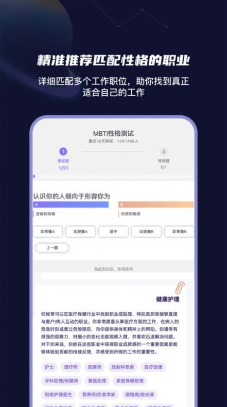 3、可以满足各种不同类型的用户,无论是学生、专业人士、管理者、企业家等,都可以通过该应用程序快速了解自己的性格类型和相关信息。