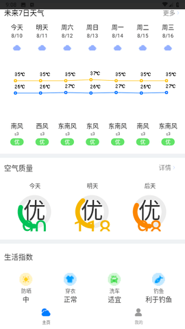 2、界面精美:曹操天气是各类应用市场上界面简单的一款天气预报软件,简单不简约,还能自动更换壁纸。