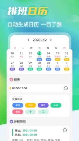1、界面清爽,交互简单,专门为倒班、值班工作人群设计。