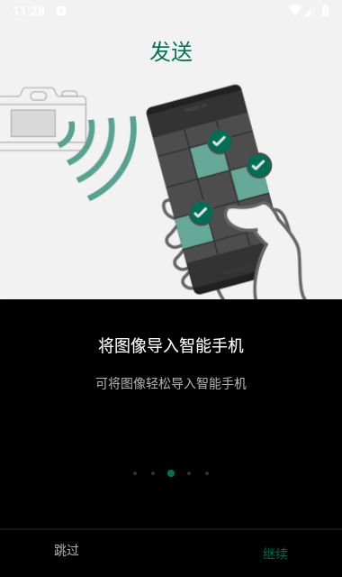 3.同时轻触智能手机中的 Connect(衔接) 和相机中的衔接到智能手机”图标。