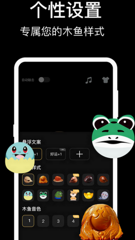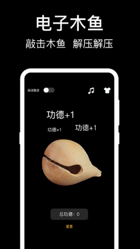 1、提供了电子版的木鱼,并能模拟出真实的敲击声音;