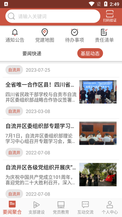 8、活动展示:发布、查看各支部三会一课、民主生活会等基本党内组织生活的开展情况