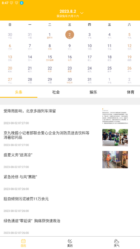量子日历是一款专业的日历软件,全新特色时间管理工具,所有信息数据都是实时更新的,内置板块丰富多样,每日天气、新闻头条、社会民生、娱乐八卦、体育赛事等等分类详细,看你想看,实用性是非常不错的,有需要的小伙伴们快来下载量子日历体验吧!