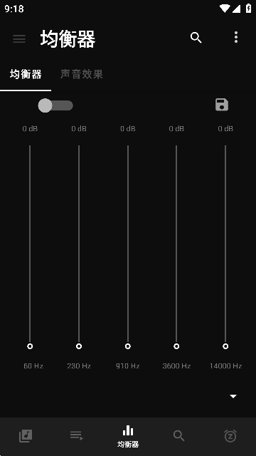 3、在均衡器中就可以自己设置各个频段的效果了。