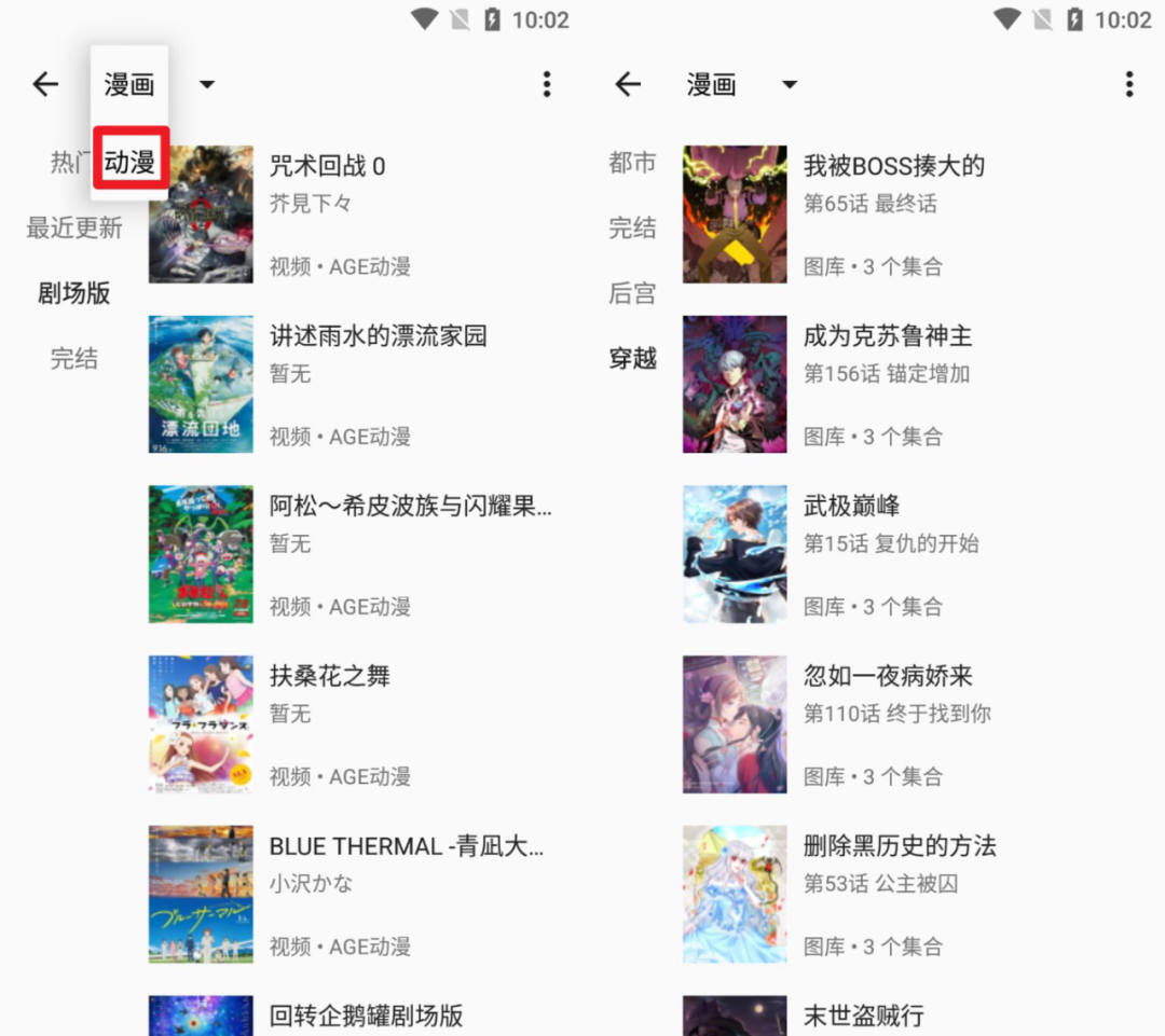 4、点击左上角菜单还可以进行动漫、漫画、小说等分类切换哦!导入后这里的资源可以说非常的丰富了,不管是小说还是漫画,几乎就没有找不到的!