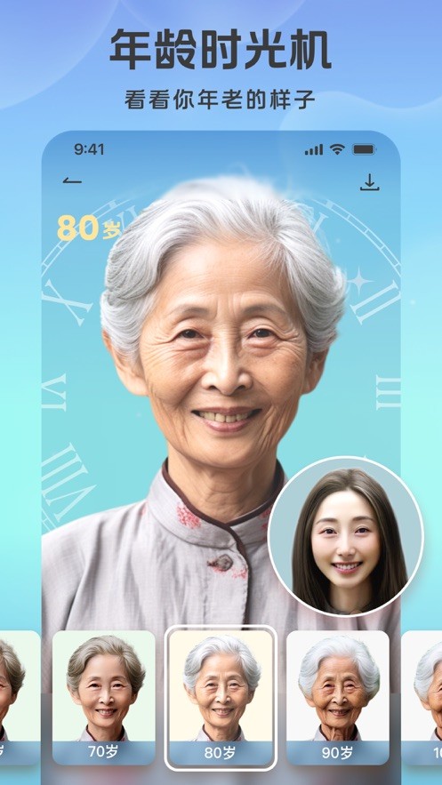 你是否好奇过你年老的模样呢?长满皱纹的你是否依旧美丽优雅呢?快来乘坐时光机穿梭到未来,看看你20年后、40年后、60年后的样子吧。