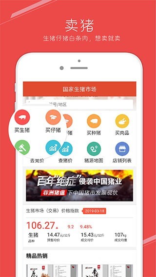 国家生猪市场是一款中国最大生猪交易app,平台内所提供的服务项目是非常全面的,不管是买生猪、猪仔、种猪、查询猪价、猪源地图等等一目了然,买的安心、价格省心,平台内所有商品都是有保障的,可以很好的满足广大养殖户们的需求,感兴趣的小伙伴们快来下载体验吧!