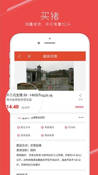 卖家可以在线卖生猪或是仔猪,在平台上就可以进行生猪交易。