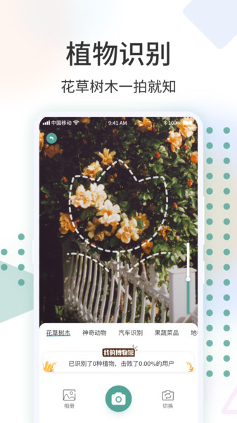 发现:提供“植物名片定制”、“艺术画廊”、“识花挑战”及应用推荐等栏目,更多精彩请持续关注。