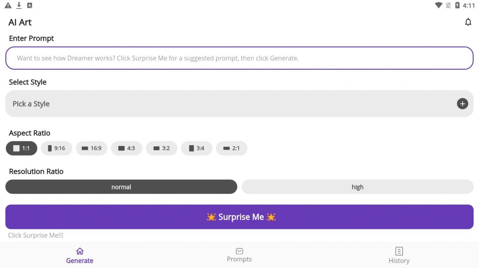 2、提供了一系列创意激发工具,包括随机生成素材、艺术家灵感库等,提供无限的创作灵感;