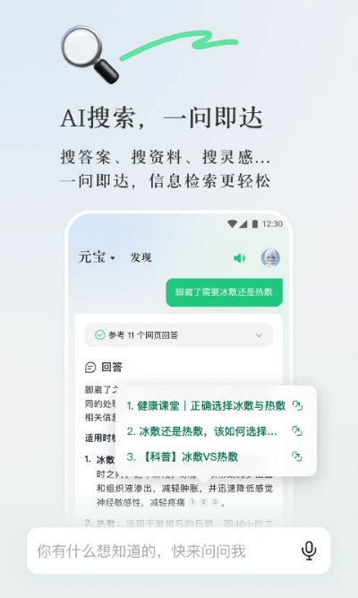 2、通过搜一搜功能直接调用元宝ai,输入关键词获取智能解答,无需切换app更方便。