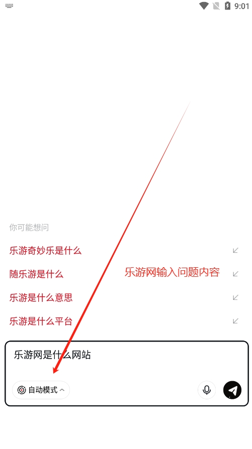 1、在下方的搜索区域内输入你要搜索的内容,可以看到有一个图标显示“自动模式”,这里我们点击它。