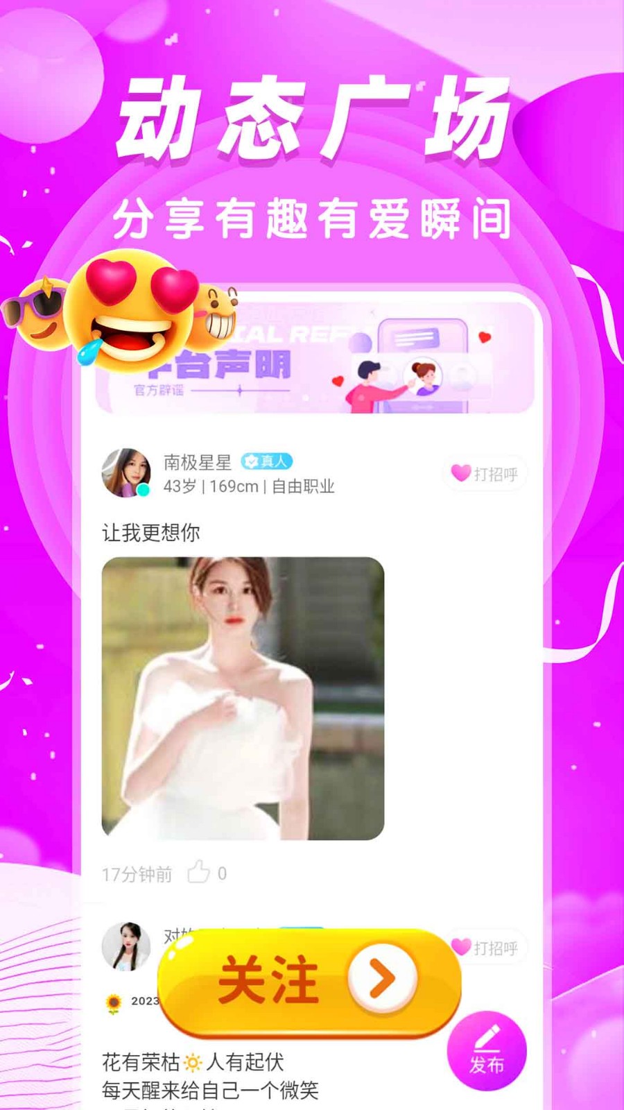 本地秒爱是一款优质的高质量交友软件,这里的用户都是经过了真人认证的大家可放心的交友聊天,支持语音聊天、视频聊天等,非常的方便,还能查到一些精准的定位信息等,欢迎大家来下载使用吧。