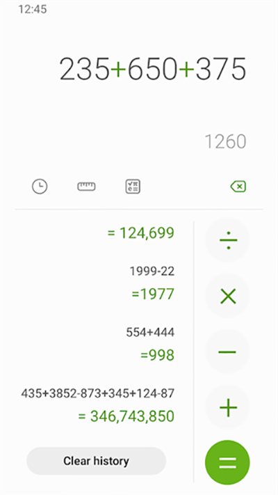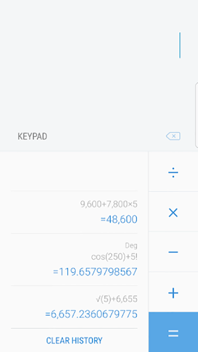 三星计算器是一款好用的计算器app,相比于市面那些计算器工具,该软件专业性更高,内置功能更全面,为大家提供多种不同的运算法则,并且计算过程详细以及结果也是非常精准的,支持历史计算查询,小巧实用,没有广告弹窗,喜欢的小伙伴们快来下载三星计算器体验吧!