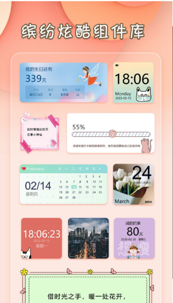 小组件桌面美化软件是一款的功能非常不错的桌面美化软件,提供了大量的主题和皮肤,让你的桌面变得更加时尚、美观和个性化。还可以根据你所在地区的具体天气情况调整天气小组件的显示内容,让你随时掌握天气情况,让你做好出行安排。并且操作也是非常的简单的,感兴趣的用户快来下载试试吧!