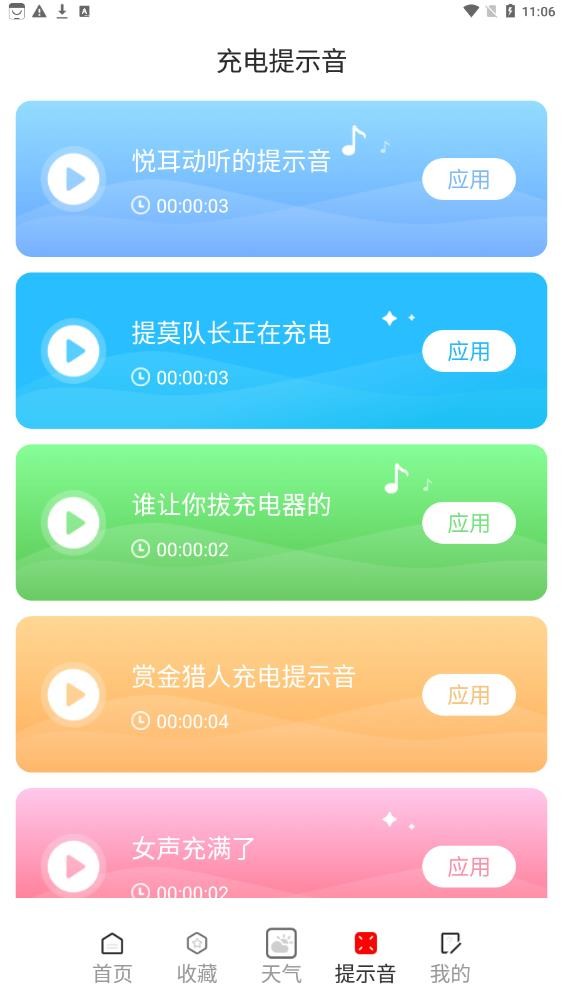 2、定制了多种充电提示音,可以选择自己喜欢的充电提示音。