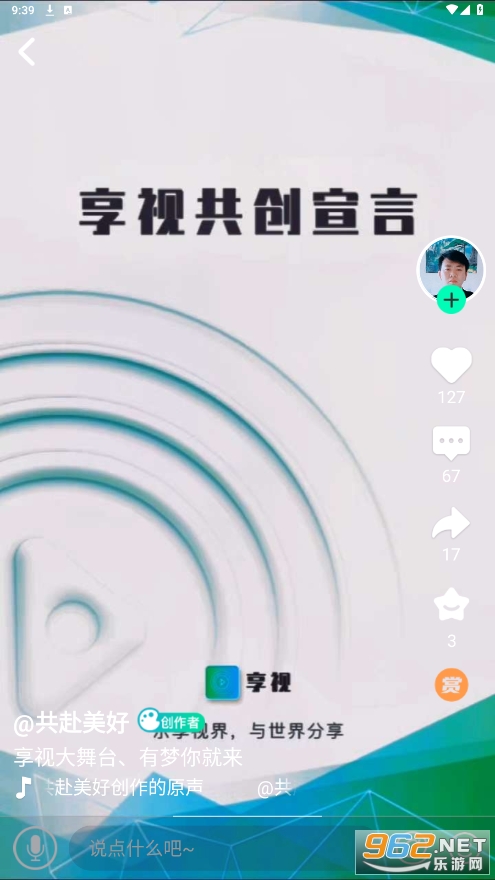 享视是一款非常有趣的应用,它不仅提供了丰富多彩的短视频内容,还为用户提供了赚钱的机会,让用户在玩乐的同时也能够实现一定的收益。此外,应用的界面设计简洁清晰,操作流畅,用户体验很好。