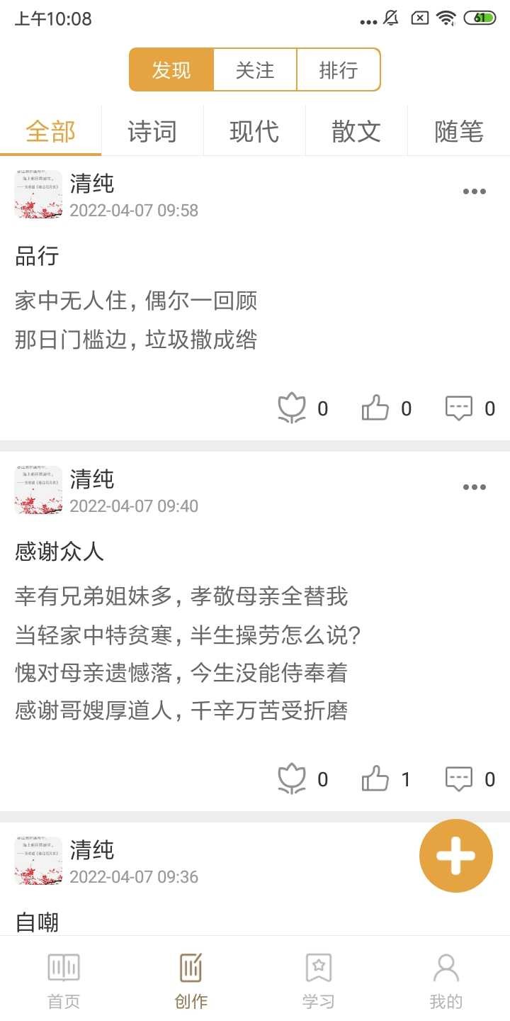 3、用户可以在软件上发表诗词.点赞关注互动关注收藏等等,让更多的人能看到你写的诗!