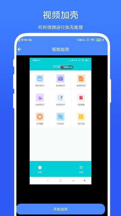 1、在主页点击中间的手机壳将进入视频选择页面,选好录屏视频程序会自动进行视频处理。