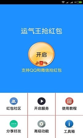 运气王抢红包是一款全自动功能齐全的抢红包软件。无论是还是QQ都是通用使用的,操作简单轻松,只需要点击软件开启自动抢红包的功能既可以坐等红包到账,切换至后台,软件也会自动运行,完全不耽误手机的使用,喜欢这款抢红包软件的小伙伴们快来下载试试吧!