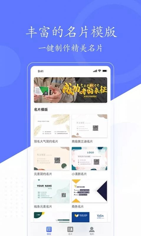 2、这款软件中还有着许多免费的精美模板可以直接选用,一键制作出美丽的名片。