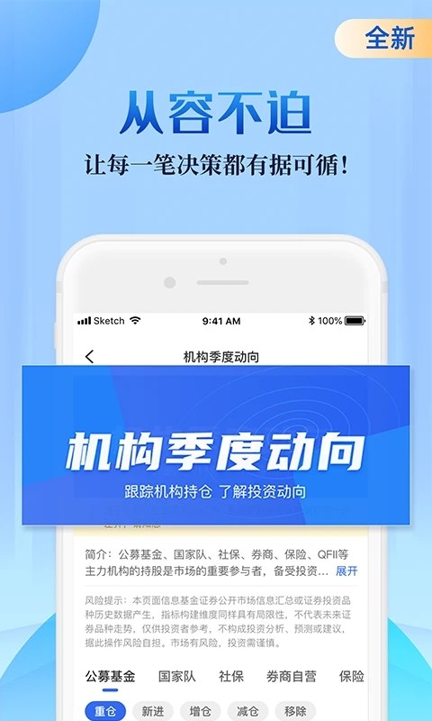 5、机构动向:追踪公募基金、国家队、社保、券商、保险、QFII,6大机构季报数据,从重仓、新进、增仓、减仓、移除5大角度,把握大资金最新动向