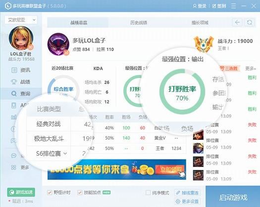 1、多玩LOL盒子让你个人在游戏在游戏里的信息,一目了然。