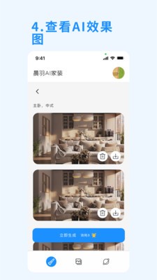 AI效果图app是一款功能非常专业的智能装修软件,采用、AI技术的设计算法,能够在短时间内生成多种家居装修方案,节省用户宝贵的时间和精力。还会根据用户的特殊需求和喜好生成符合用户要求的个性化家居装修方案,能够很好的满足不同用户的需求,有需要的用户快来下载体验吧!
