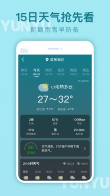云雨天气app是一款功能非常强大的天气预报软件。采用数据分析和人工智能技术,实时更新天气信息。每天更新数百万条天气数据,保证天气预报准确度高达95%以上,还可以通过摄像头预览当地的天气情况,让您更直观地了解实际天气情况。是您生活、出行、旅游的必备工具。