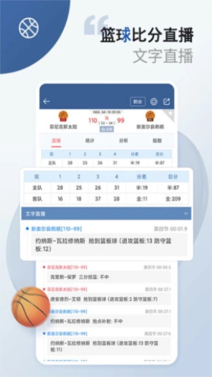 1、即时比分:最快的足球即时比分、篮球比分、网球比分及比分推送,并提供现场比赛数据直播;