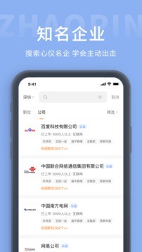 1、用户们能够根据不同的知名企业进行选择,选择自己想要的岗位